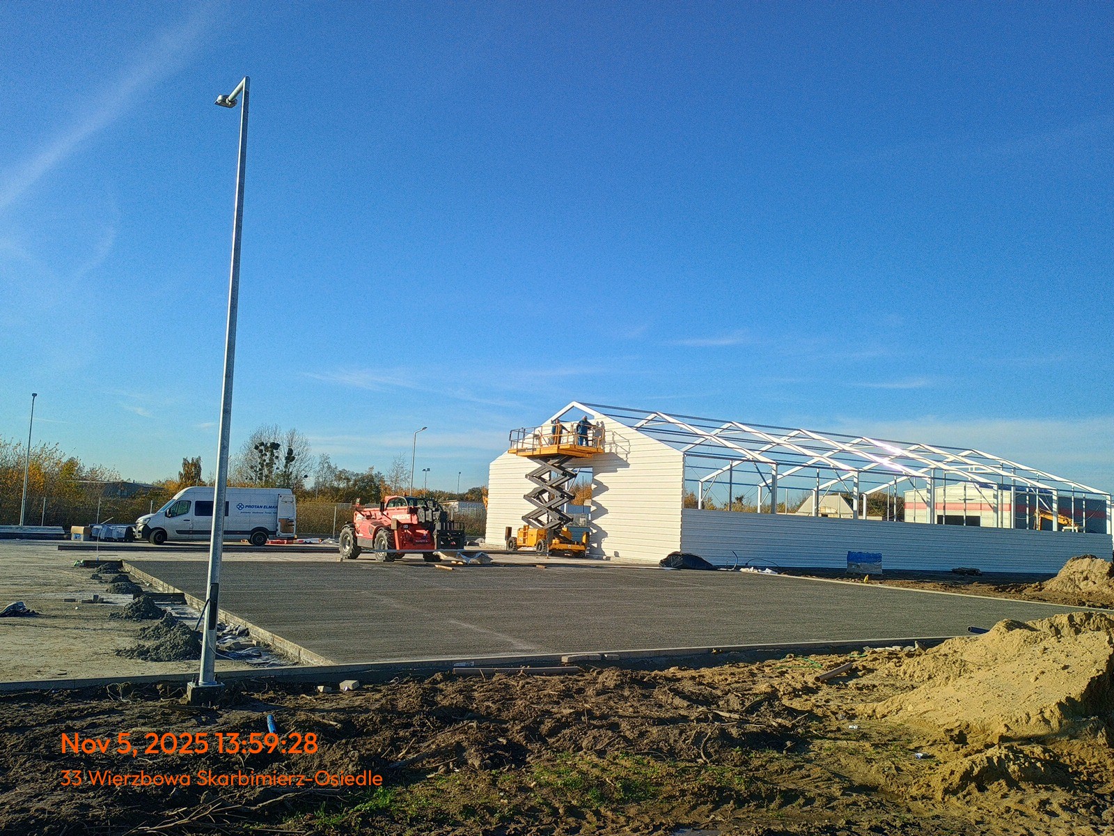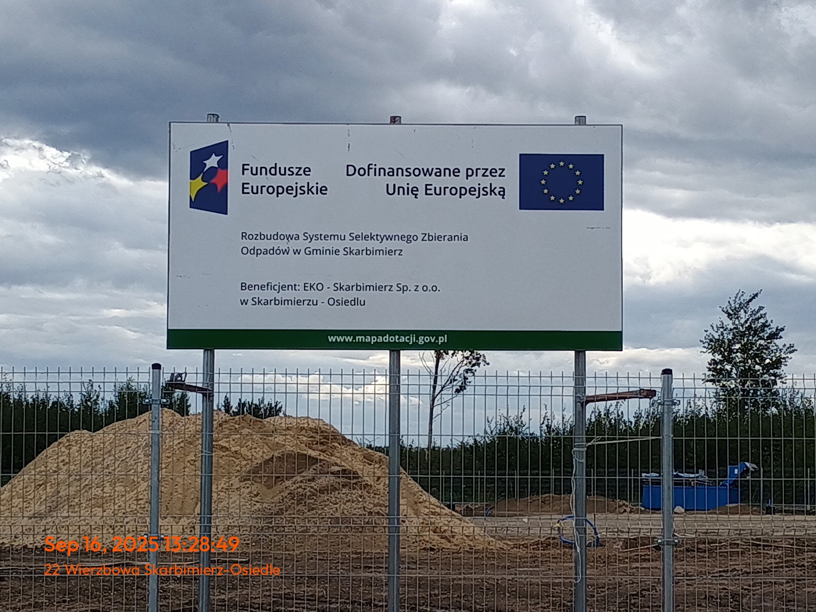 W Gminie Skarbimierz trwa realizacja projektu „Rozbudowa Systemu Selektywnego Zbierania Odpadów”, współfinansowanego z Funduszy Europejskich na Infrastrukturę, Klimat, Środowisko 2021–2027. W ostatnich miesiącach wykonano część dróg wewnętrznych, miejsc parkingowych i ogrodzenia. Powstają sieci wodociągowe i kanalizacyjne, instalowane jest oświetlenie oraz monitoring. W budynku składowym na odpady do recyklingu wykonano posadzki i nawierzchnię placu, przygotowano podbudowy pod przyszłą nawierzchnię betonową. Chodniki są w większości gotowe, a na parkingach po badaniach nośności zostanie ułożona kostka betonowa. Trwają prace nad wykonaniem placu składowego oraz najazdów do wagi, a także kontynuacja prac przy budynku garażu. Projekt konsekwentnie posuwa się naprzód i zapewni mieszkańcom nowoczesną, bezpieczną i przyjazną środowisku infrastrukturę do selektywnego zbierania odpadów.